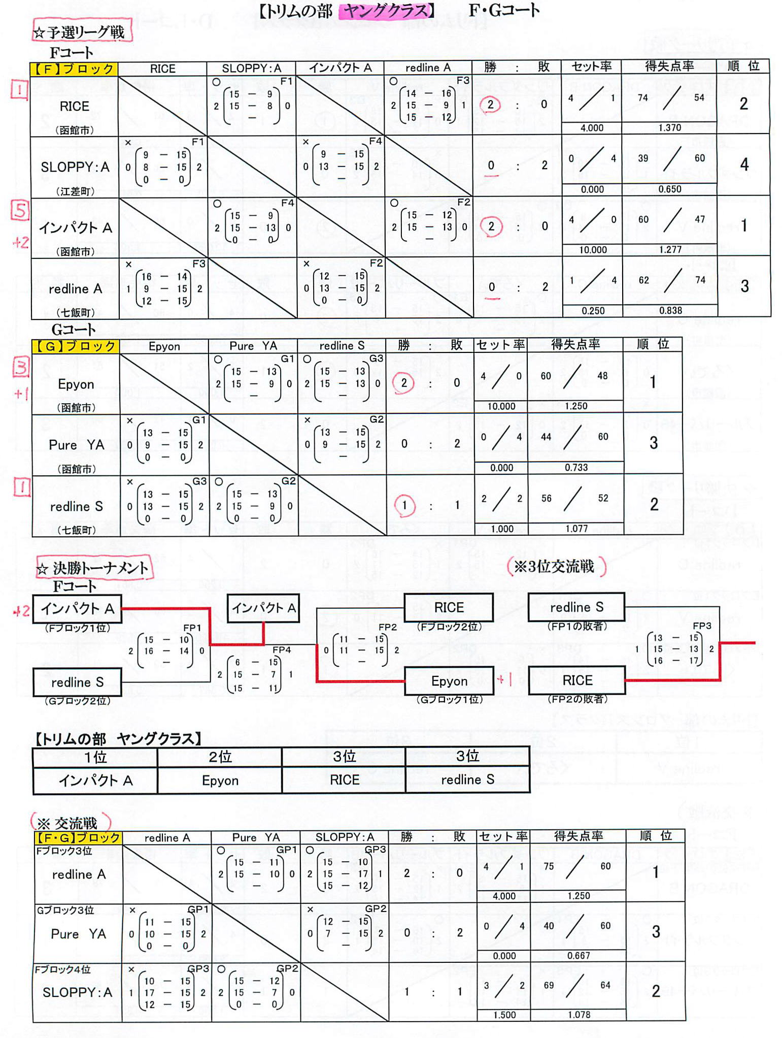 ★8/24ブロックフェスティバル函館大会/函館アリーナ 4週連続となる大会であったり等でゼロス参加者少数のため不参加 8/26⇒大会結果掲載 ★メンバー★ 〇:│ ×:滝西吉菅林│山友琴 △:辻│矢浜加 ★大会結果★ 試合TOP TOP